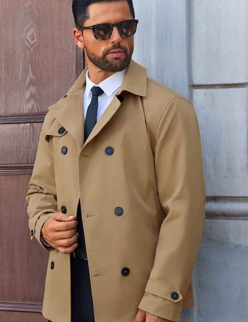 Minimalist solid-color men’s long trench coat, helping you effortlessly create versatile stylish looks this fall.